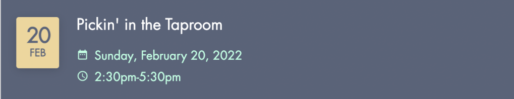 Nod Hill Brewery in Ridgefield Connecticut will host the first of what may become a monthly public bluegrass jam: “Pickin’ in the Taproom”. Bring your fiddles, banjos, dobros, bass, mandolins, and guitars and come jam on Sunday, February 20th from 2:30-5:30