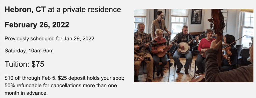 Looking to learn how to jam? Check out this all day Wernick Method Bluegrass Jam Class in Hebron on Feb 26