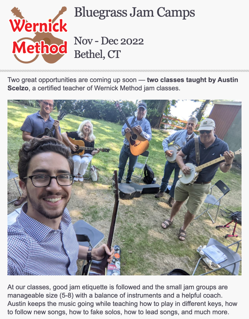 Bluegrass Jam Class offered before 5-7PM Email Austin@AustinScelzo.com to register