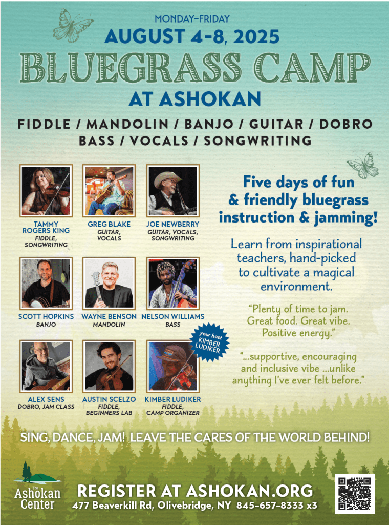 IBMA Mentor of the Year, Kimber Ludiker hosts this fun and friendly week of bluegrass instruction and jamming for fiddle, mandolin, banjo, guitar, bass, harmony singing, songwriting, and new this year… dobro! Learn from inspirational teachers hand-picked to cultivate a magical learning experience. There’ll be classes, concerts, mini-lessons, band scrambles, open mics and more. All levels and backgrounds are welcome!