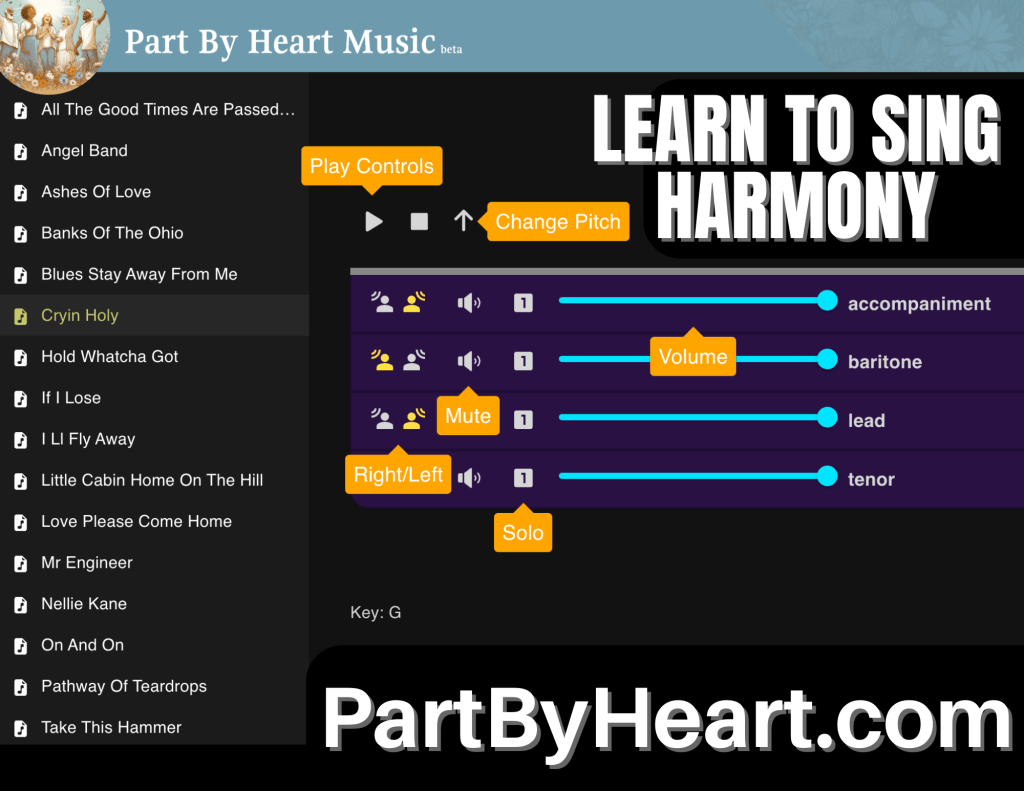 The class will utilize a new resource – an app designed to help make learning harmony fun and easy! Part By Heart helps you learn to commit your part to memory and practice your harmony singing skills from anywhere. Whether its a little extra guidance in your jam / band or its at home learning on your own, this app can help you find your starting pitch and learn your part by heart! Check it out at PartbyHeart.com or by searching “Part By Heart Music”