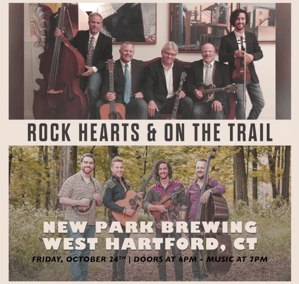 CT Bluegrass Showcase on Friday October 24 Rock Hearts and On the Trail at New Park Brewing