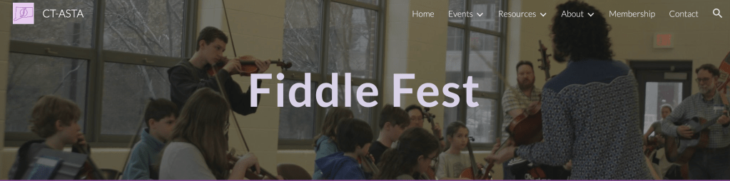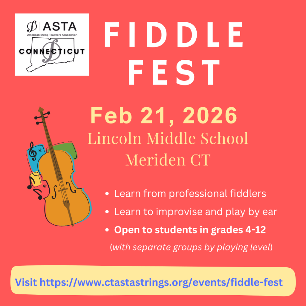 Fiddle Fest is an event for string students in grades 4-12 that focuses on non-classical styles of playing like bluegrass and Irish music. It’s organized by the Connecticut chapter of the American String Teachers Association (CT-ASTA) and includes workshops, group playing, and opportunities to learn from guest teachers.