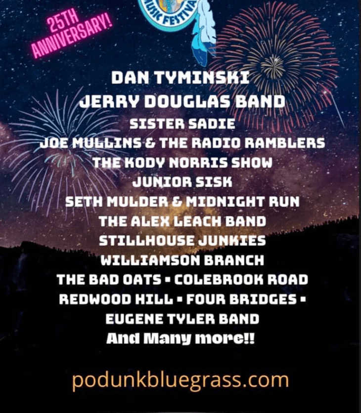 Podunk Bluegrass Festival Aug 11-14 Gates open Wednesday 8/10 for weekend ticket holders! Day tickets…