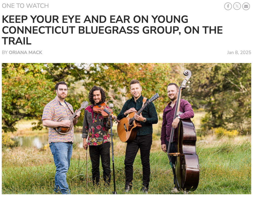 “On The Trail is a modern acoustic quartet that explores everything from bluegrass to contemporary pop, from stunning instrumentals to beautiful traditional songs.” The group was founded through their love of bluegrass and the band the Punch Brothers. They have already gained recognition and praise for their exploration and strong execution of the challenging music, as well as for their new original music. Most recently, On the Trail had the honor of winning the 2022 Thomas Point Beach Band Competition after participating in 2021’s Telefunken Battle of the Bands at the Podunk Bluegrass Festival. They also were selected as an Emerging Artist at Grey Fox Bluegrass Festival 2023. Their debut self-titled EP On the Trail is also available for streaming on all platforms.